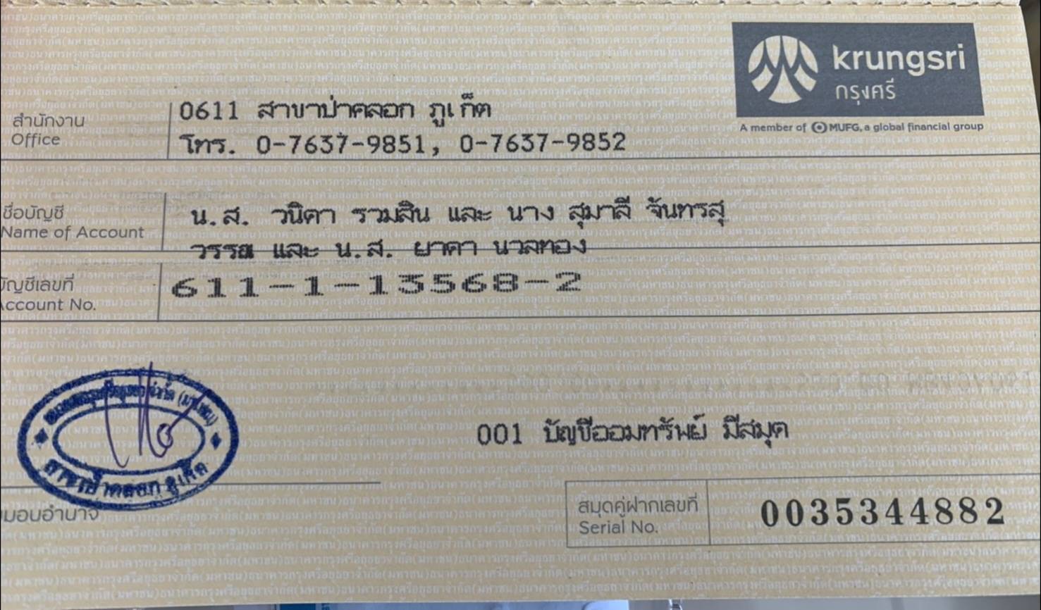 ธนาคารกรุงศรี นิติบุคคลบ้านจัดสรร บ้านสวนเนรมิต1 611-1-03286-9